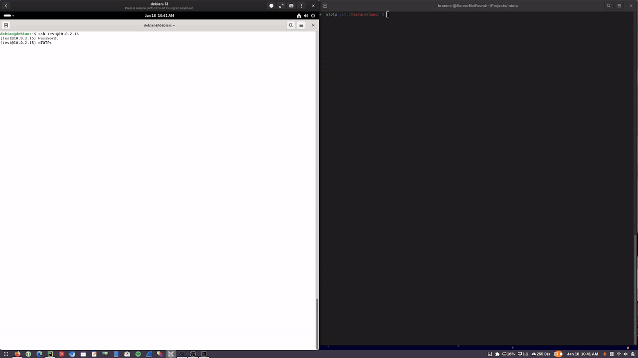 mTOTP is a manual time-based authentication protocol for humans, computed without electronic devices. It uses a secret key, substitution box, and diffusion to generate OTPs for future times with intentional authentication time.