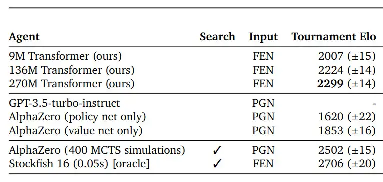 Google DeepMind recently published Amortized Planning with Large-Scale Transformers: A Case Study on Chess, wherein they present a transformer-based model for playing chess, trained on the strongest chess engine, StockfishSpecifically, Stockfish 16, which has since been surpassed by newer versions of Stockfish. ↩. This model takes a game-state as input, and learns to output three separate ...