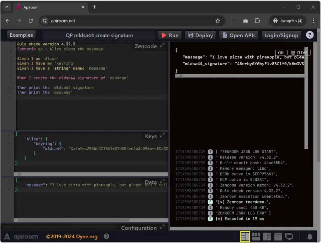 Zenroom is a tiny, secure, fully isolated, open source, virtual machine that runs on any platform, even on a chip or a web page. It performs cryptography (signatures, hash, zkp, homomorphic, post-quantum […]) on multiple curves, blockchain intereoperability and general computation. Zenroom supports signatures and pairing with most elliptic curves, see the full list here. The curves SECP256K1, ...