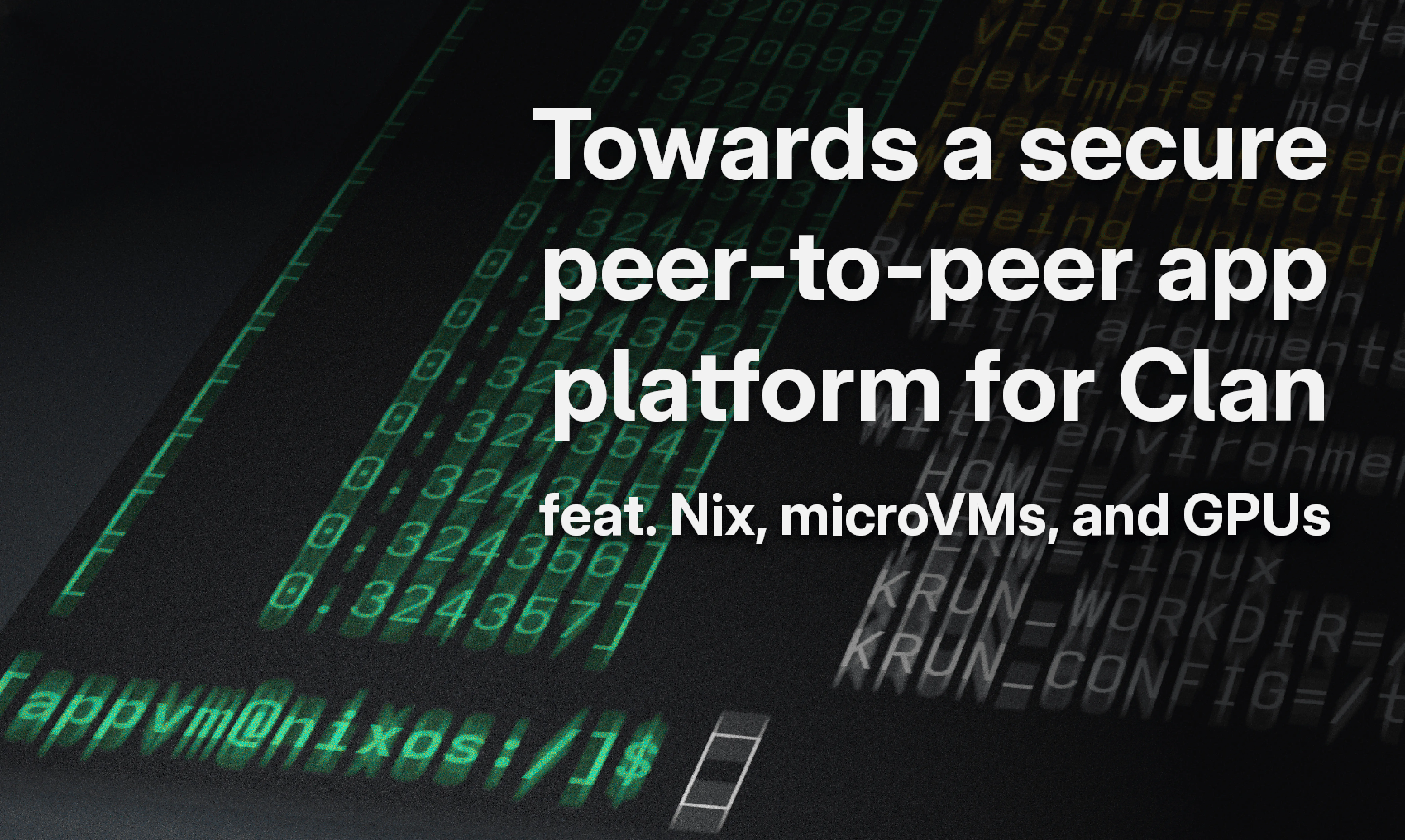 The Clan project aims to create a peer-to-peer community software platform that matches commercial solutions in security, usability, and convenience. It uses Nix, microVMs, and GPU virtualization to achieve secure isolation and portability, with ongoing development and testing.