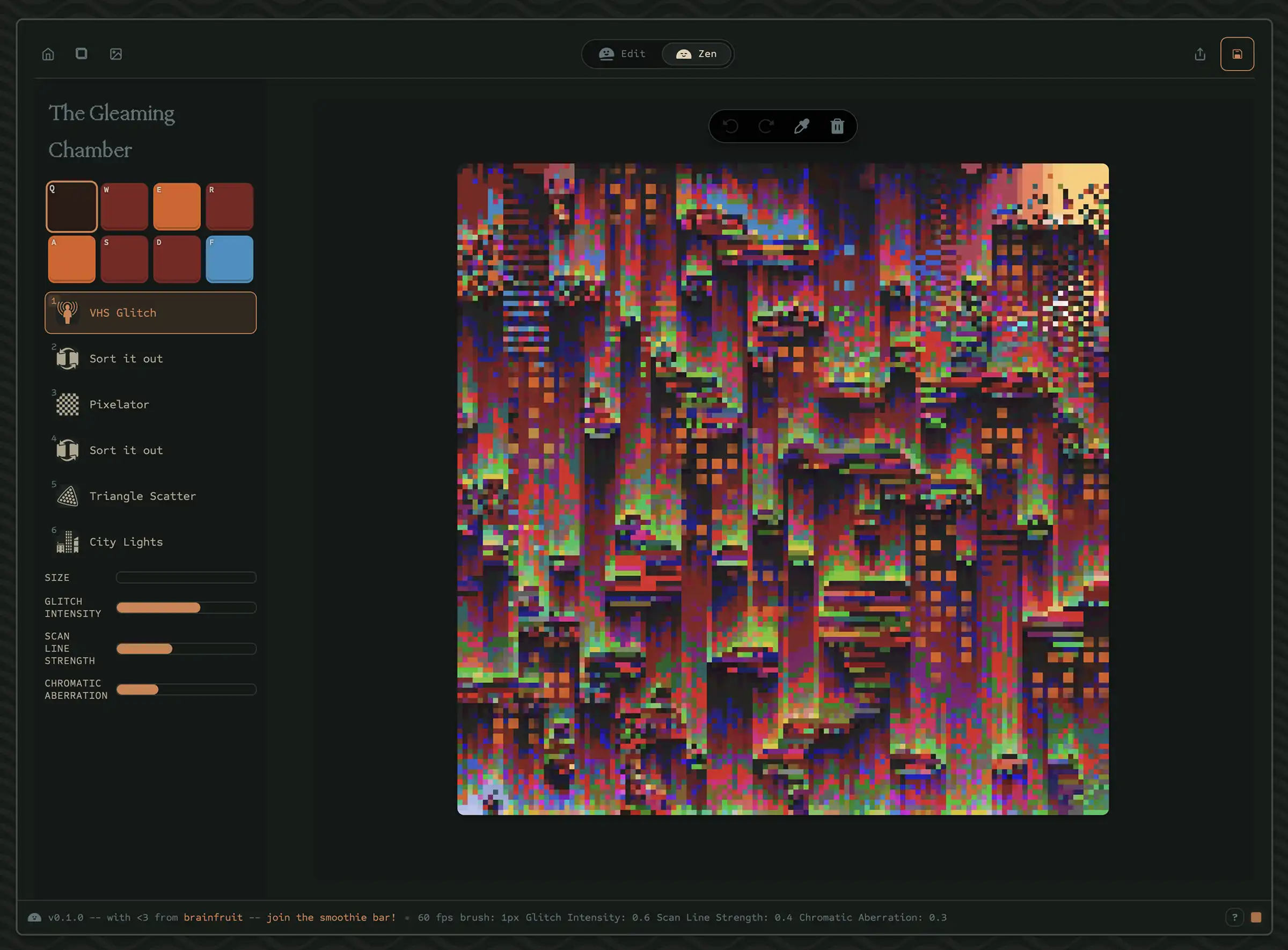 MOSS is a pixel editor with customizable brushes that blend and behave uniquely. It allows users to manipulate data, create patterns, and share their work with others.