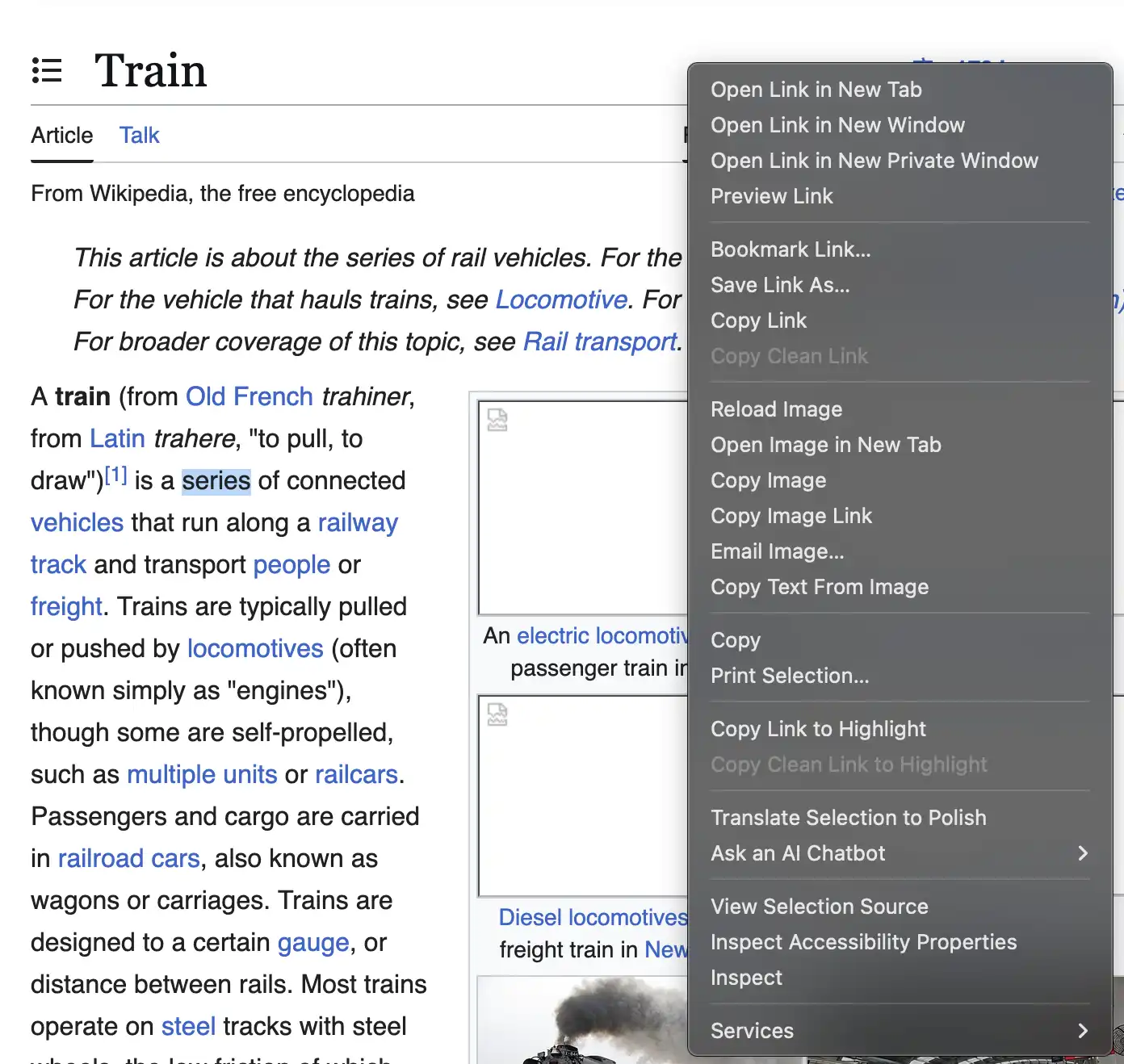 The user is frustrated with the numerous right-click menu options in Firefox on MacOS, which can be disabled by setting certain about:config settings to false. However, some options like the "Languages" menu cannot be removed and require a custom userChrome.css to be created.