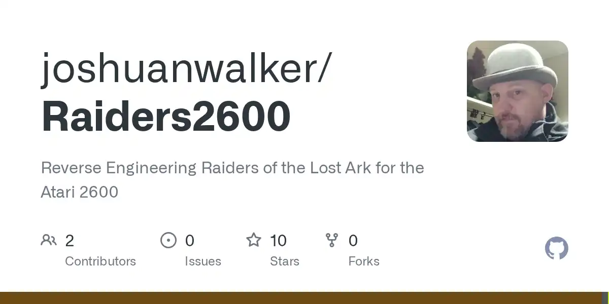 Original Game (1982) by Atari, Inc. Original Designer: Howard Scott Warshaw Disassembly & Analysis: Dennis Debro & Halkun (That's me!) This repository contains the fully reverse-engineered and commented source code for the Atari 2600 classic, Raiders of the Lost Ark. out/: Destination for compiled binaries (.bin), symbol files (.sym), and listing files (.lst). (auto generated at ...